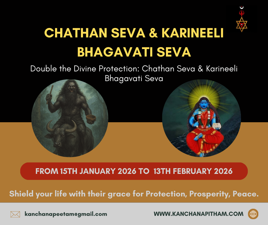 “Embrace the Dual Divine Blessings of Chathan Swamy and Karineeli Bhagavati.”